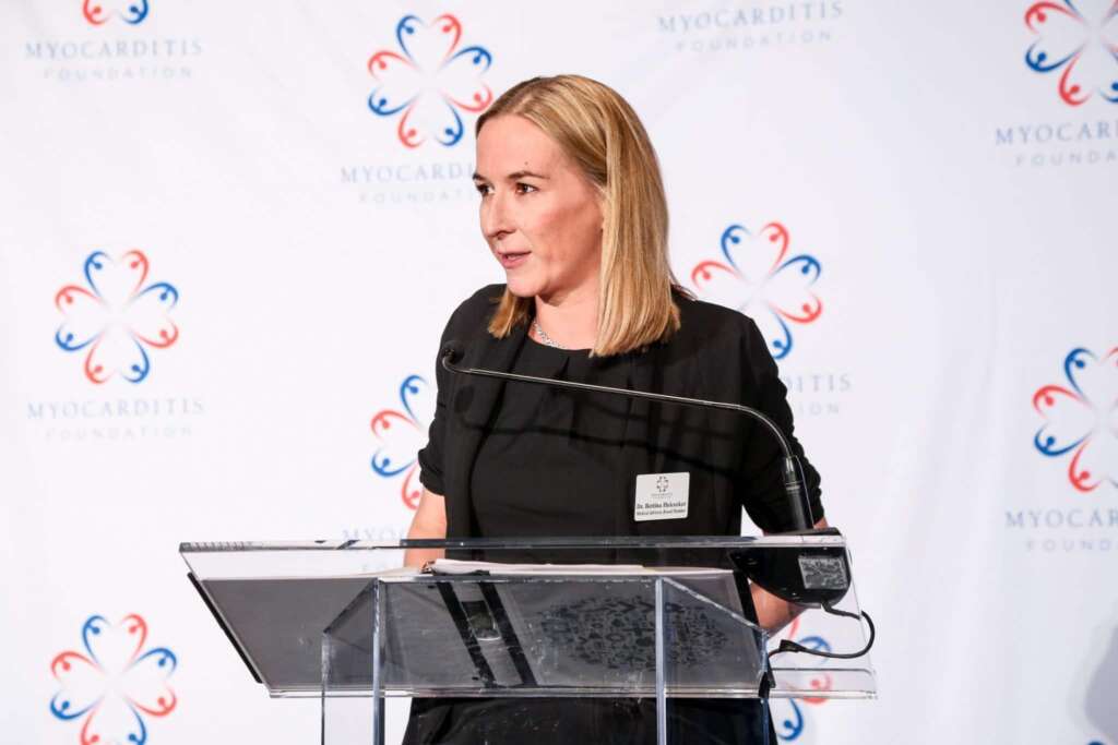 Dr. Bettina Heidieker, Head of Heart Failure and Cardiomyopathies at Charité in Berlin Germany, gave an overview of myocarditis and the Myocarditis Foundation BioBank, which will collect blood samples, clinical data and patient demographics to provide a invaluable first of its kind resource for researchers worldwide.