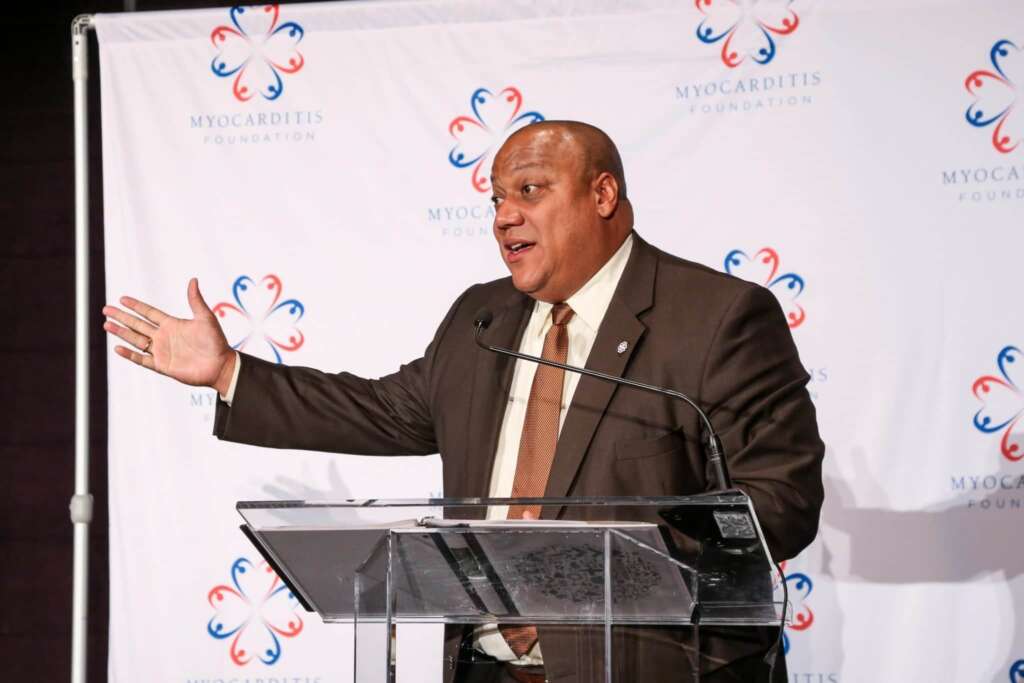 Chris Corso and Dr. Doug Luffborough lead the program, which was highlighted by a touching onstage introduction of “The Three Amigos” – Matthew Corso, Ben Baldwin, Jackson DeBusschere – teenage myocarditis survivors who have become close friends.