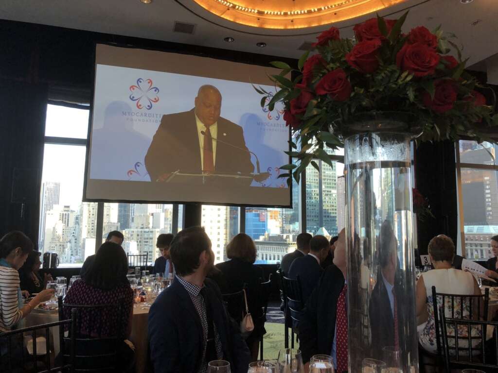 Nearly 400 corporate executives, volunteers and supporters, family members and survivors affected by myocarditis gathered at the Mandarin Oriental ballroom overlooking Central Park in New York City for a night of support and awareness.